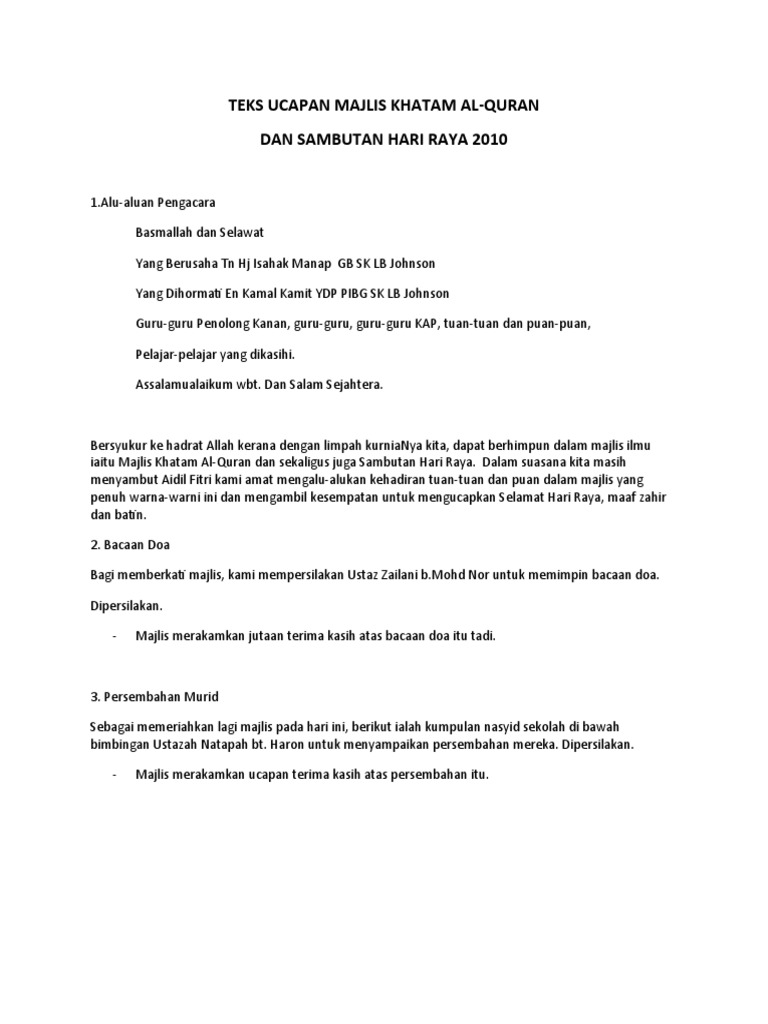 Teks Ucapan Majlis Khatam Al Pdf